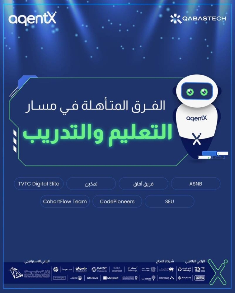 تمكن فريق TVTC Digital Elite من الكلية التقنية الرقمية للبنات بالرياض من التأهل إلى النهائيات الحضورية في هاكثون AgentX للذكاء الاصطناعي التوكيلي بعد اختياره ضمن أفضل 33 فريقًا في المرحلة الافتراضية.