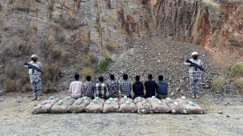 تمكنت الدوريات البرية لحرس الحدود في منطقة جازان من القبض على ثمانية مهربين من الجنسية الإثيوبية، بعد اكتشافهم وهم يحاولون تهريب 360 كيلوجرامًا من نبات القات المخدر. وقد تم نقلهم والمضبوطات إلى الجهات المختصة لاتخاذ الإجراءات القانونية اللازمة.