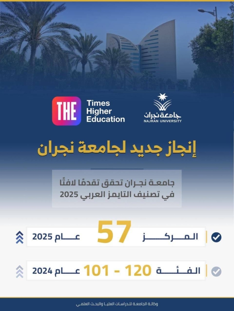جامعة نجران تتصدر التصنيف العربي لــ التايمز بالمركز 57