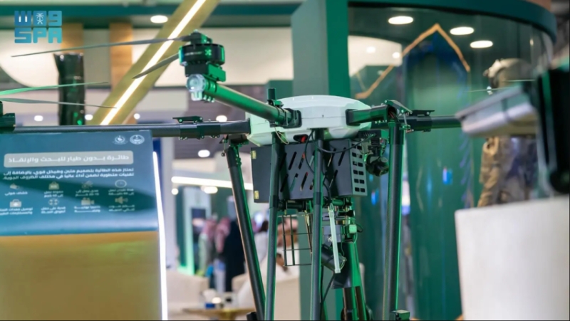 تستعرض المديرية العامة للدفاع المدني في معرض الطيران العام 2025، الذي ينظمه نادي الطيران السعودي في مطار الثمامة بالرياض، طائرة دون طيار للبحث والإنقاذ.
