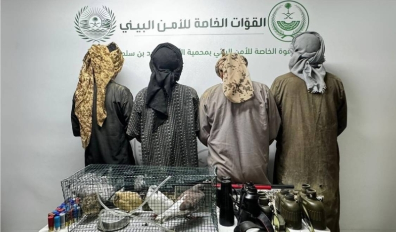 تم القبض على أربعة مواطنين بتهمة الصيد غير المشروع في محمية الأمير محمد بن سلمان الملكية. وفقًا للقوات الخاصة للأمن البيئي، تم ضبط راكان فالح محمد الشراري، وعبدالله صياح عواد الشراري، ونايف جادل مساهر الشراري، وفيصل سعود محمد الشراري وبحوزتهم بنادق شوزن وذخيرة منوعة وأدوات صيد غير قانونية.
