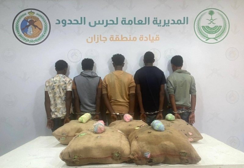 تمكنت الدوريات البرية لحرس الحدود في منطقة جازان من القبض على خمسة مهربين من الجنسية الإثيوبية بتهمة تهريب كمية كبيرة من نبات القات المخدر.