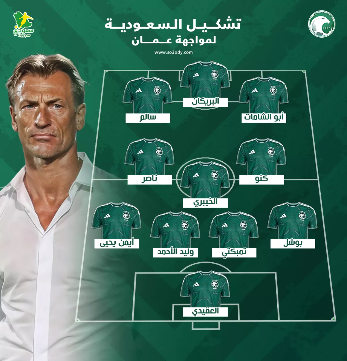 تشكيل السعودية الرسمي قبل مباراة عمان