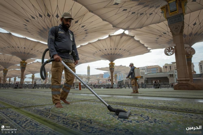 وقد تم تكثيف أعمال النظافة والتعقيم في المواقع المختلفة، بالإضافة إلى توفير المياه والعربات اللازمة، وإشراف على تشغيل أنظمة التكييف والإنارة، ومتابعة انسيابية الحركة في الساحات والمداخل الرئيسية للمسجد النبوي.