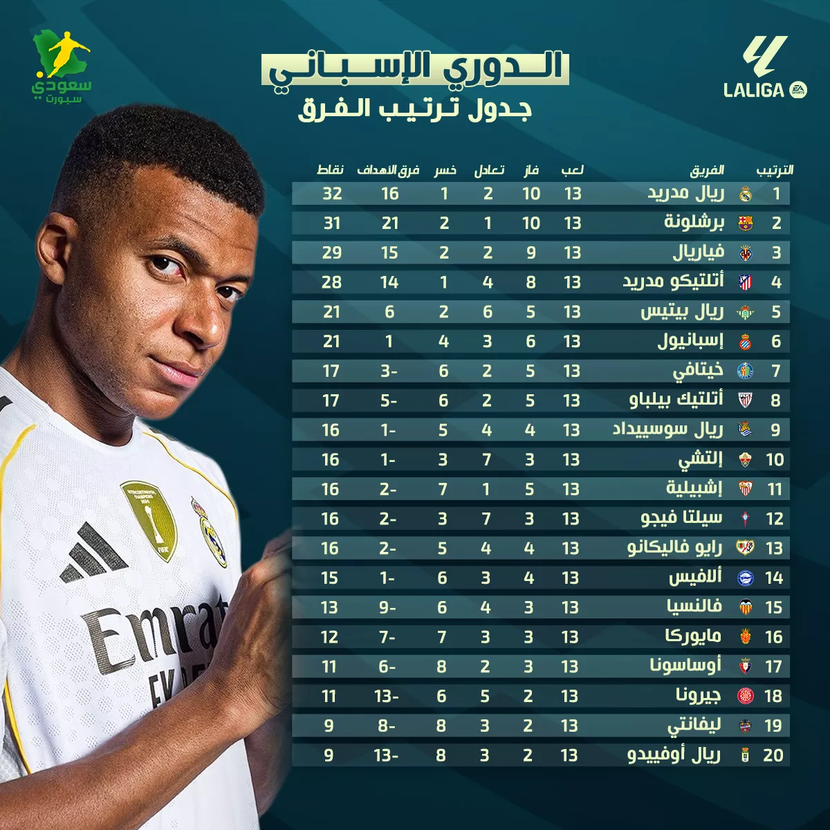 إثارة الليجا تستمر: تحليل ترتيب الدوري الإسباني بعد الجولة الـ13