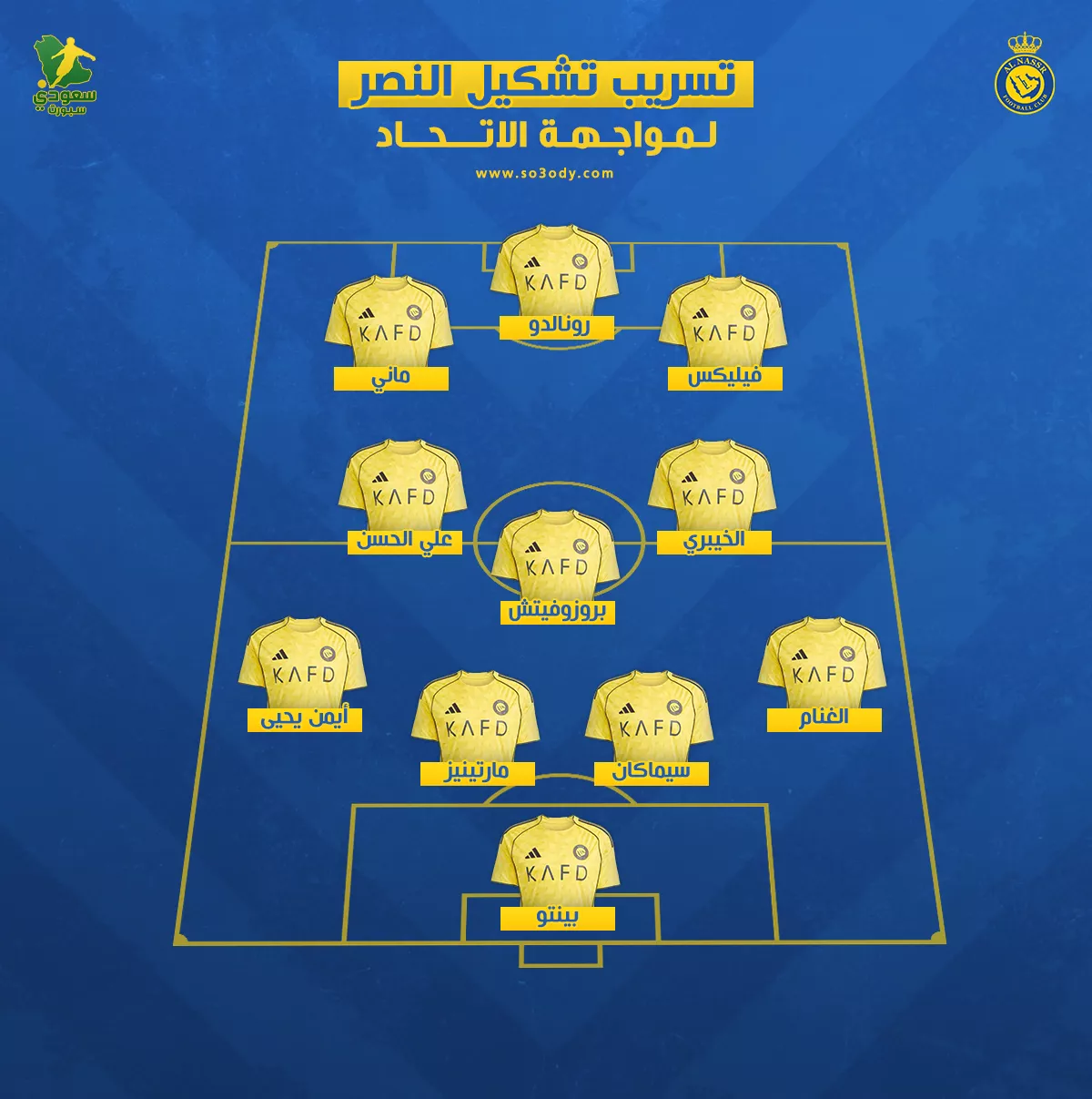 تسرب تشكيلة النصر ضد الاتحاد في السوبر السعودي وموقف كومان